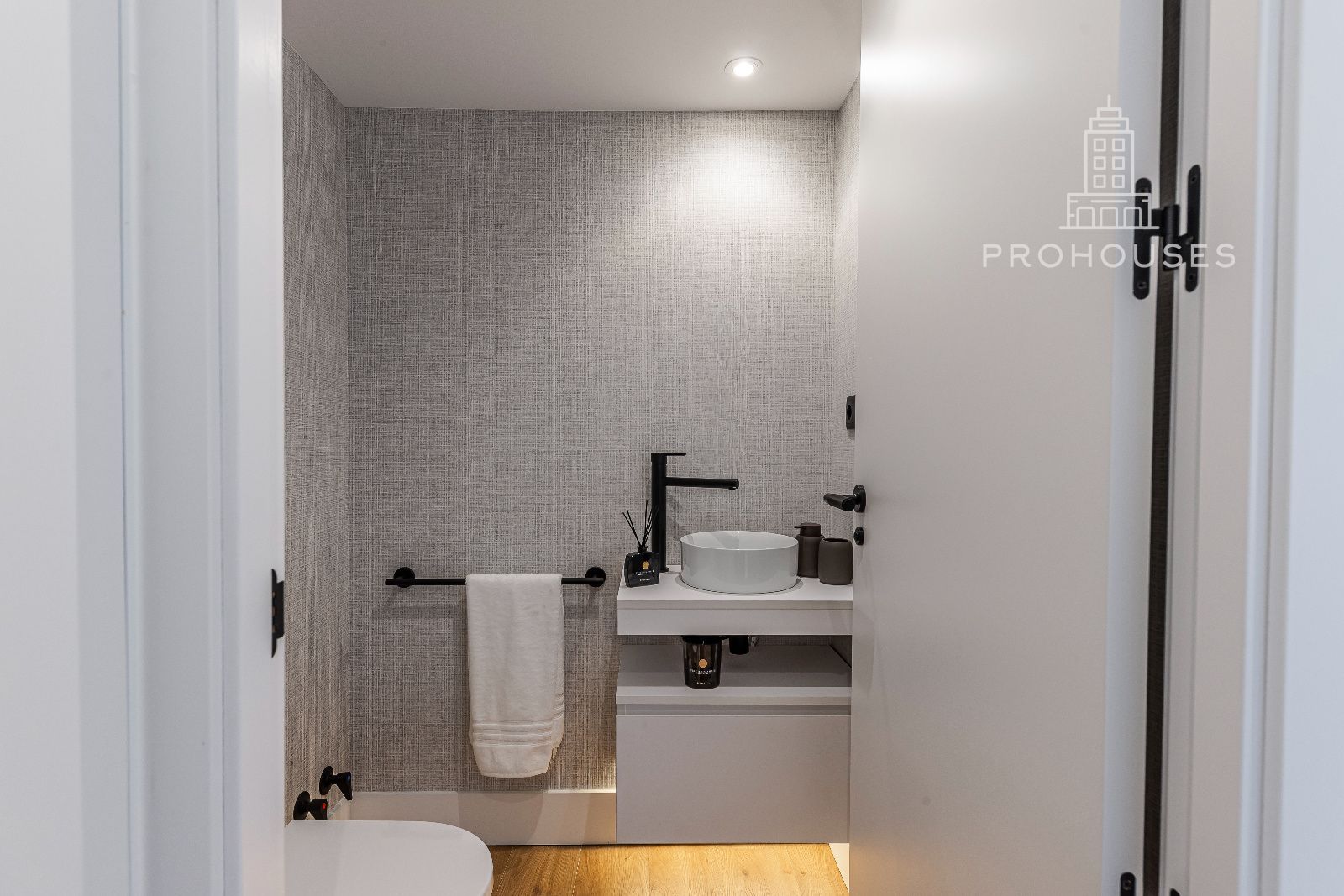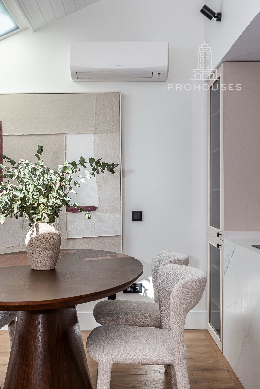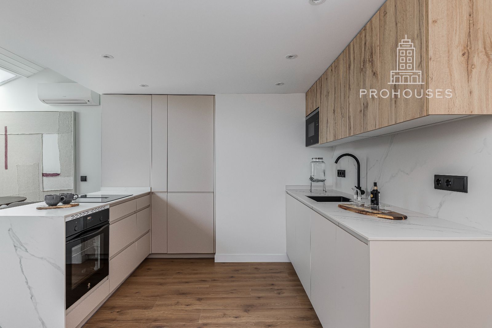 En el interior, la vivienda ofrece un elegante y luminoso salón-comedor, perfectamente integrado con el exterior, generando una sensación de amplitud y continuidad. La cocina, de diseño moderno, se presenta como un espacio sofisticado y funcional.