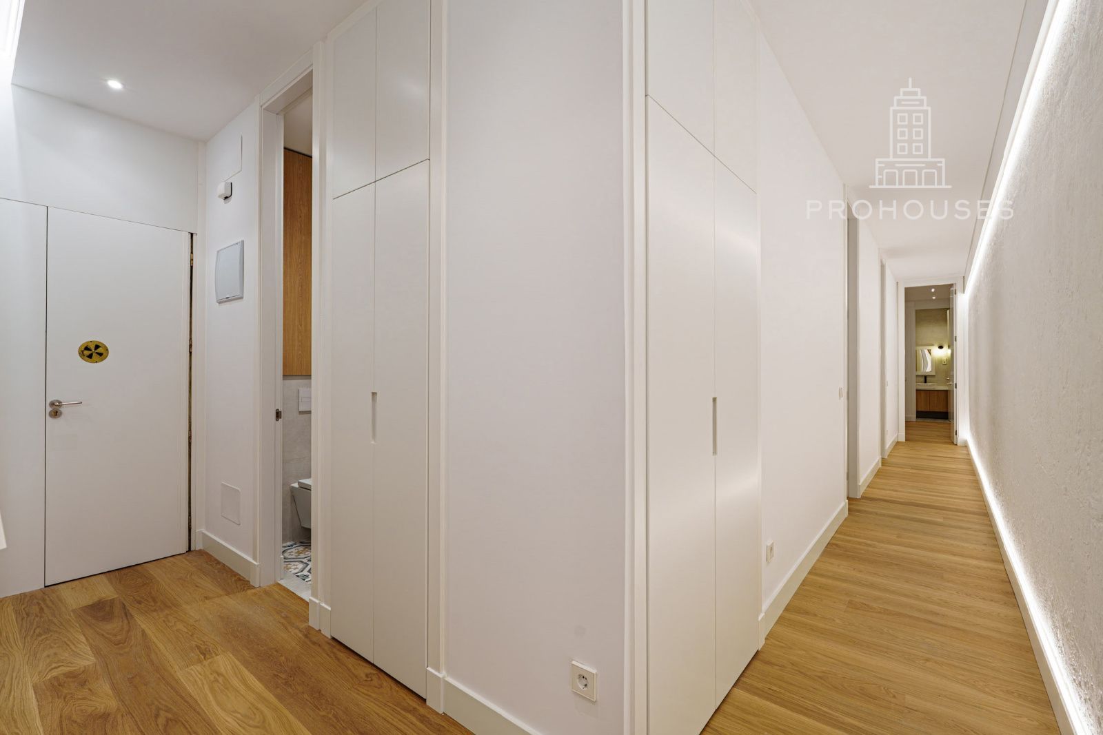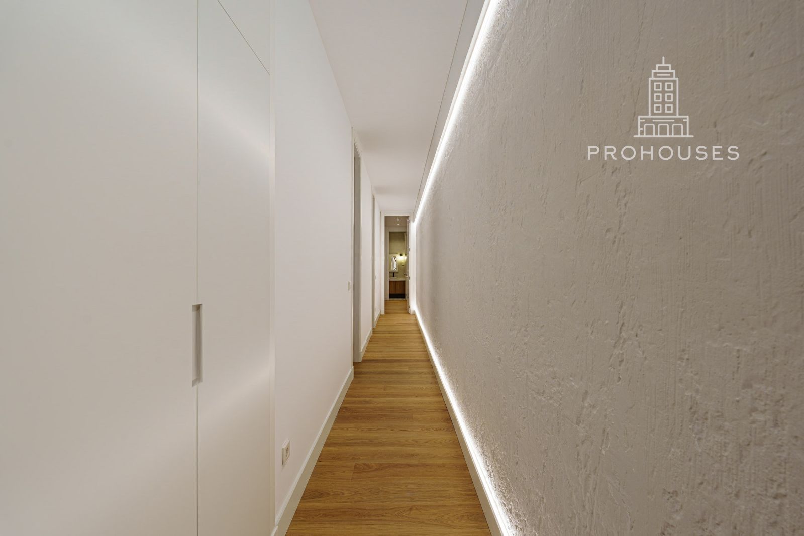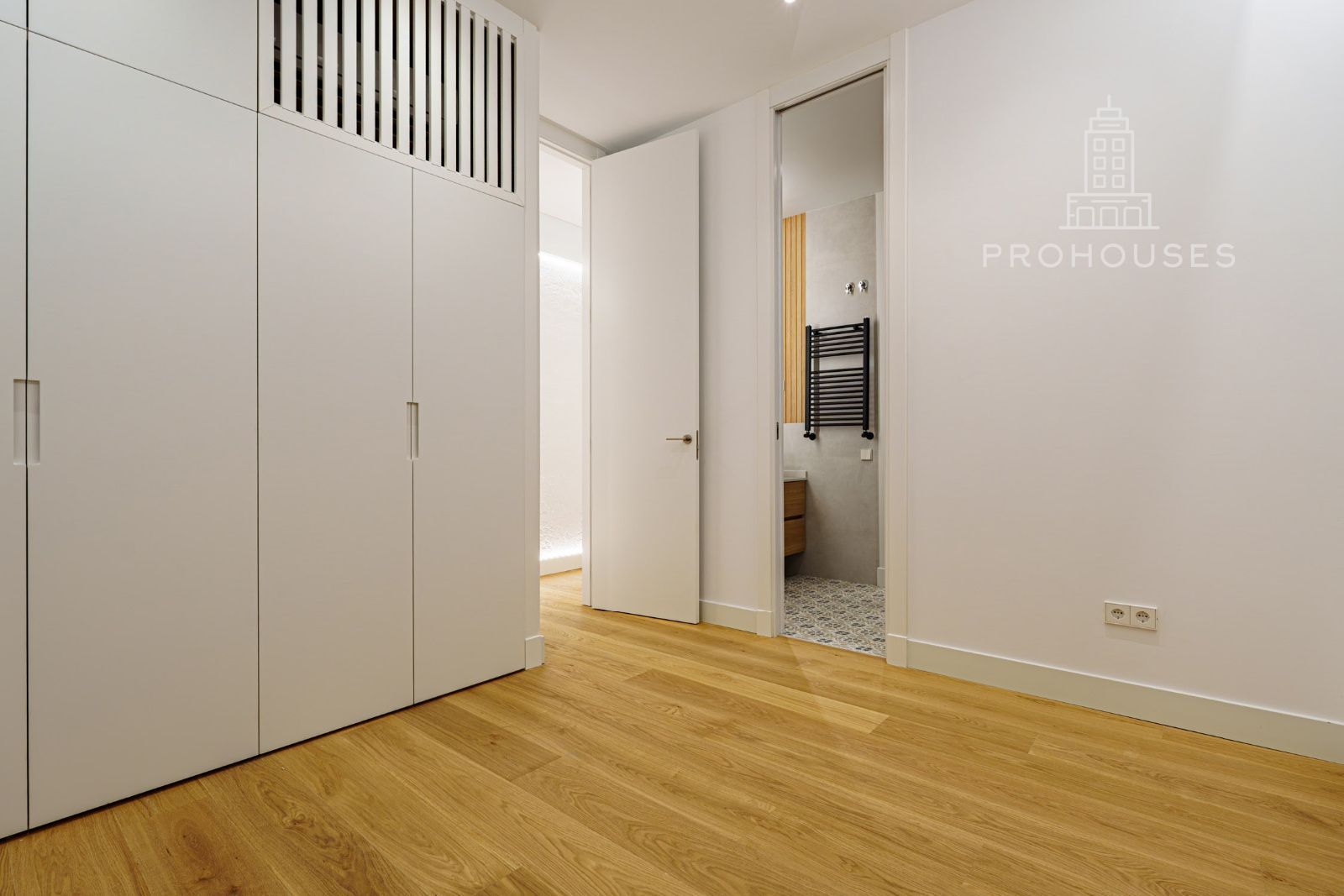 La vivienda se distribuye en tres amplios dormitorios, todos ellos con armarios empotrados a medida de suelo a techo, optimizando al máximo el espacio y aportando una estética limpia y sofisticada. Dispone de dos baños completos, además de un aseo de cortesía, diseñados con acabados actuales y líneas modernas.