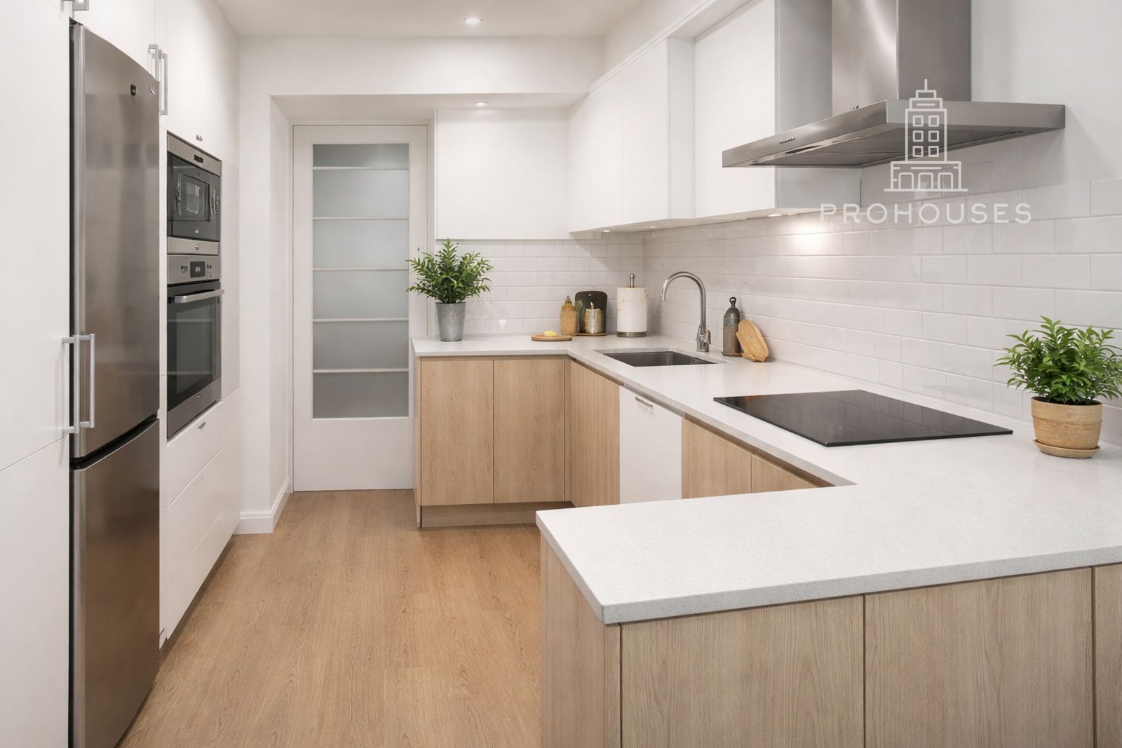 Situada en una tercera planta con orientación noreste, la vivienda disfruta de una luminosidad suave y constante que realza cada uno de sus espacios. La carpintería exterior de aluminio con doble acristalamiento, las persianas automáticas y los suelos de tarima flotante de alta calidad aportan confort, aislamiento y una elegante continuidad visual.