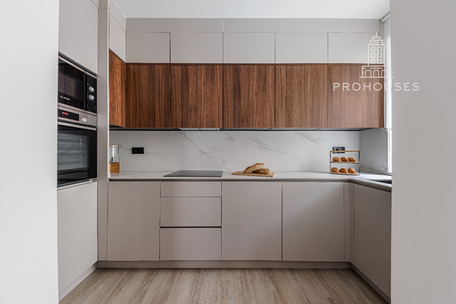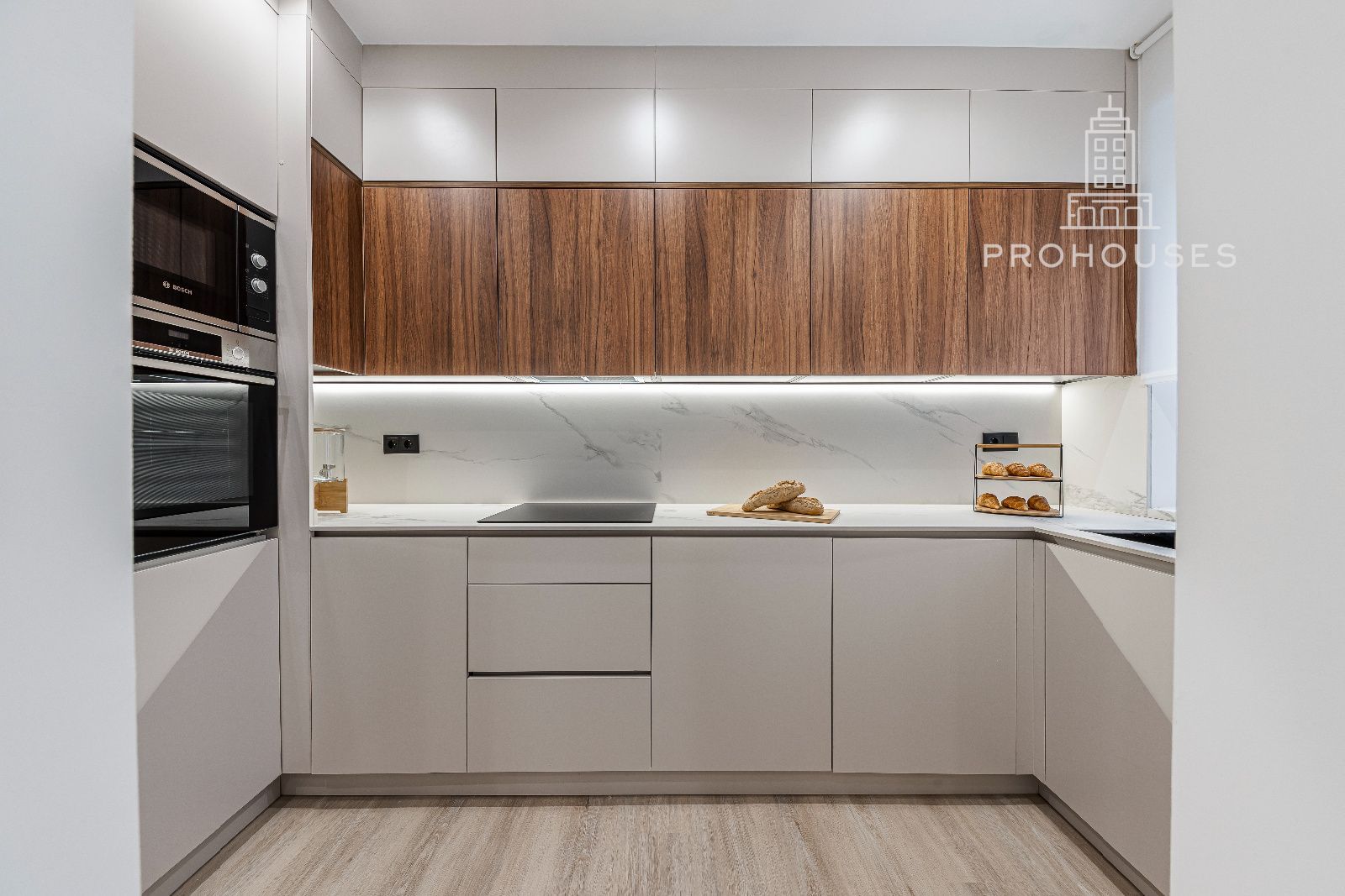 La cocina, de diseño actual, combina líneas limpias con soluciones prácticas, integrándose perfectamente en el conjunto de la vivienda.
