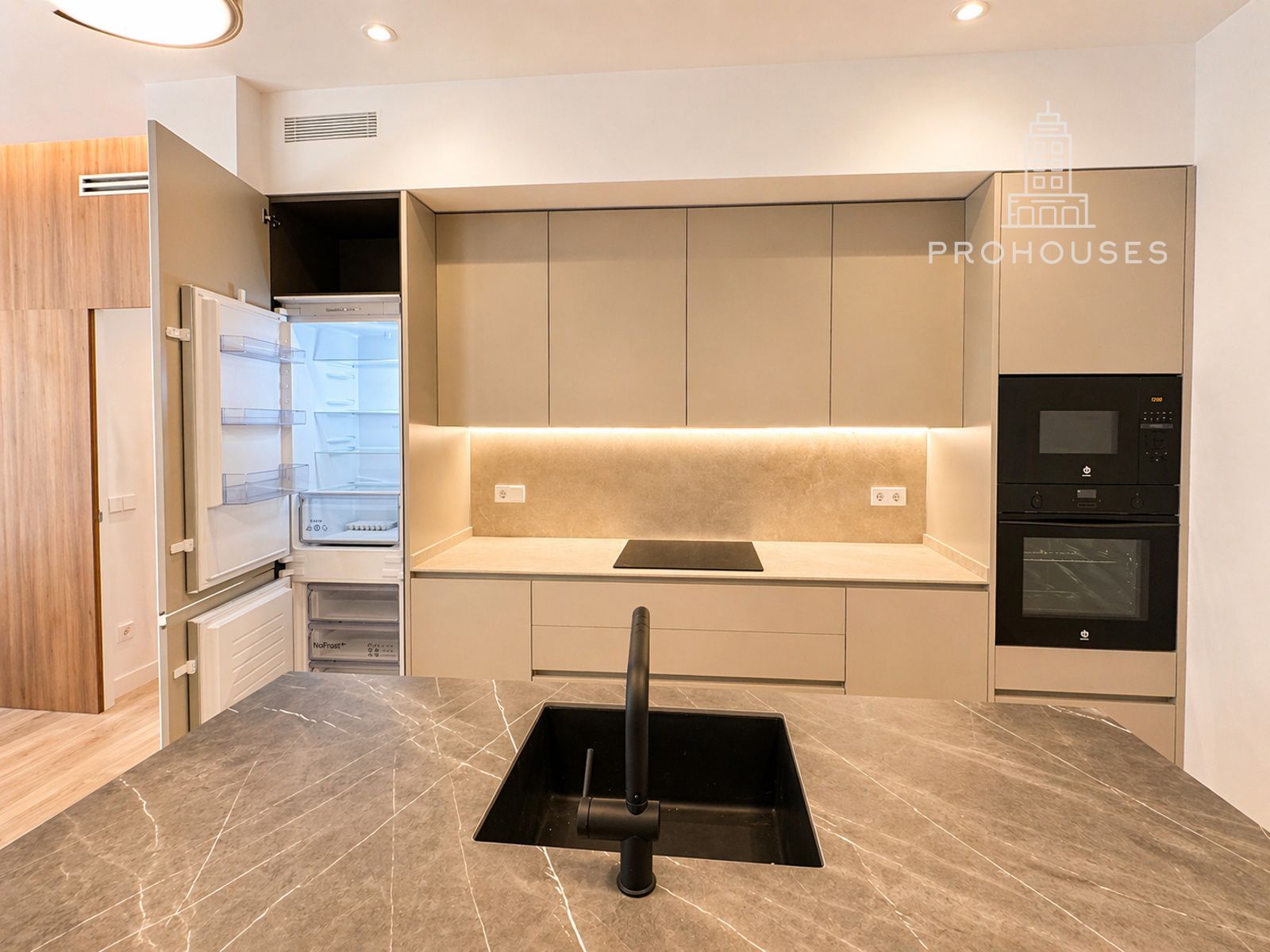 El corazón de la vivienda lo ocupa una moderna cocina con isla y zona de desayunador, totalmente equipada, pensada tanto para el día a día como para disfrutar de momentos especiales. El salón se abre al exterior a través de tres impresionantes balcones de suelo a techo con vistas a la emblemática calle Alcalá, aportando una luminosidad excepcional y una sensación de amplitud única.
