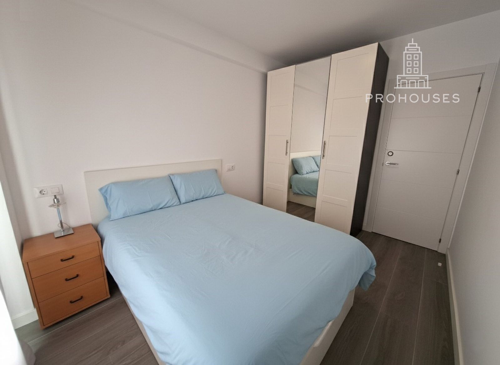 La vivienda se distribuye en tres dormitorios, todos con ventilación natural. Dos de ellos son exteriores con orientación sur, muy luminosos, y el tercero da a un patio interior tranquilo. Dos dormitorios se entregan amueblados con camas canapé y colchones de alta gama, y todos cuentan con cerradura individual.