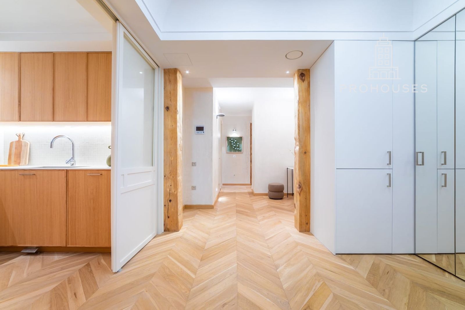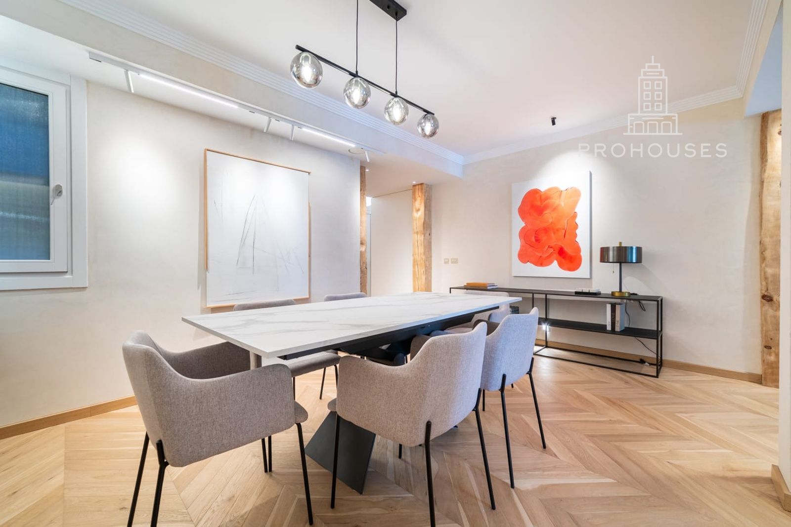 La vivienda es completamente exterior, con orientación oeste, lo que garantiza una excelente entrada de luz natural durante toda la tarde. Ha sido objeto de una reforma integral de autor, donde el diseño contemporáneo se combina con materiales nobles y soluciones técnicas de alto nivel.